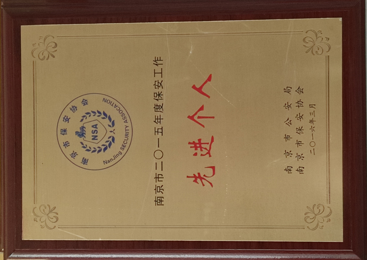 江蘇中祥保安公司榮獲南京市2015年度保安工作先進(jìn)個(gè)人